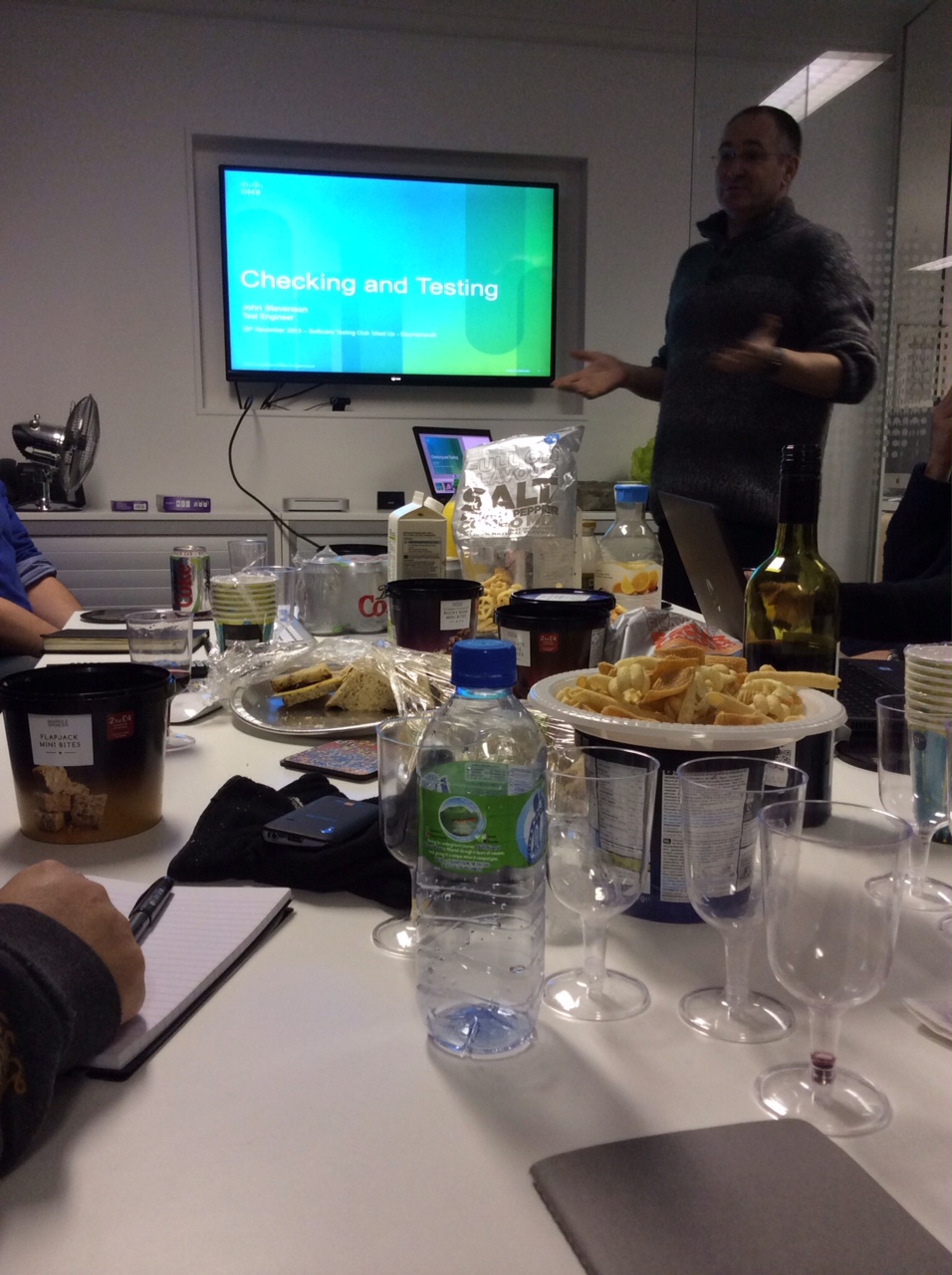 John gave a talk to the group on “Checking and Testing” he previously blogged about this topic in October entitled “Are you ‘Checking’ or ‘Testing’ (Exploratory) Today?” In the talk he gave to our group he touched on the key points from this post. It was a very insightful and thought provoking talk that constantly makes you question and re-evaluate the way that you are conducting your day to day testing. If you haven’t done so already, take a look at the post.