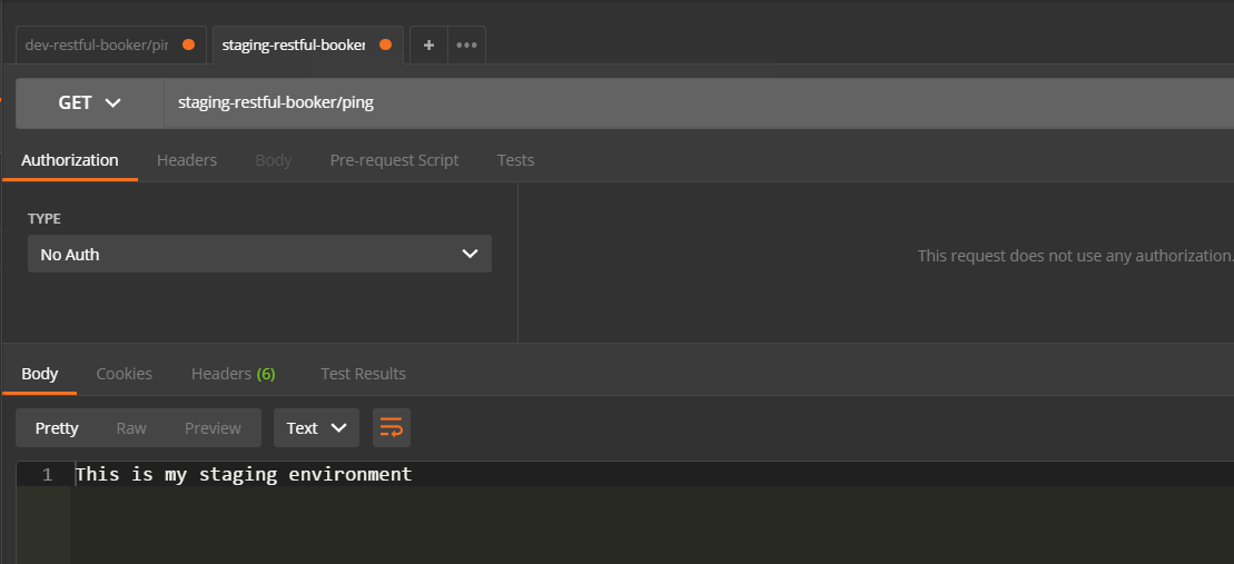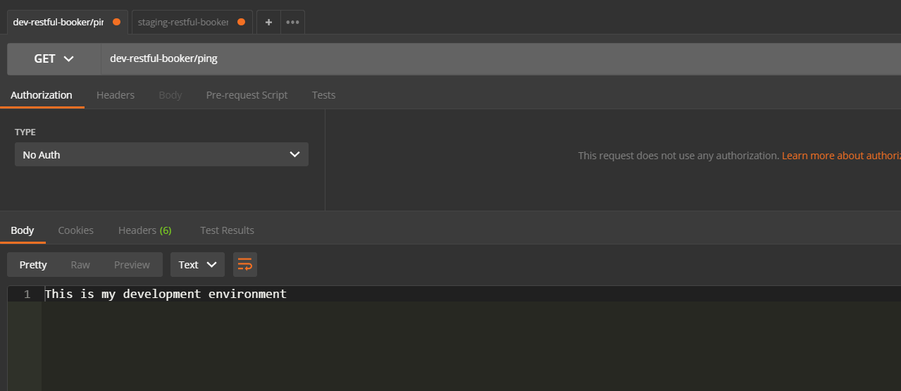 To fully explain what I meant by the different environments in the ramblings above, I thought I would just create a couple of super basic Nodejs Express APIs locally and then edit the Hostfile on my local machine to override the DNS for the localhost domain, so that I could show requests being made to dev-restful-booker and staging-restful-booker in Postman.