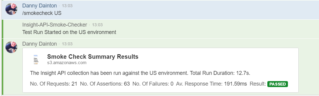 I now have a new API to play with and I decided that I was going to re-create my ‘SmokeChecker’ within Slack. I have to say, it was a bloody pleasure creating an integration in Slack, so many features and things that you can do. They have also put a lot of effort into the documentation side, which helps new users like myself, get up to speed quickly.